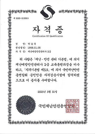 국민재난안전총연합회 재난안전보안관 임명 및 재난예방안전관리사 2급 자격획득 페이지 정보 작성자 최고관리자 작성일23-06-08 09:31 조회27,800회 댓글0건 관련링크 본문 국민재난안전총연합회 재난안전보안관 임명 및 재난예방안전관리사 2급 자격획득 댓글목록 등록된 댓글이 없습니다. 이전글 다음글 목록