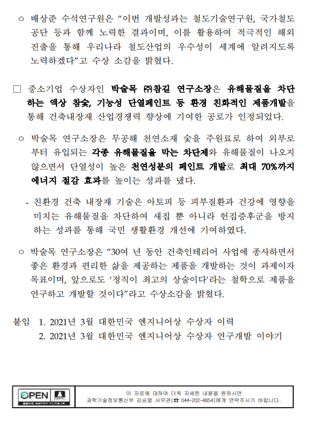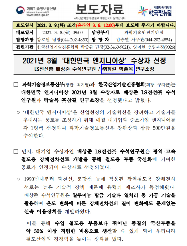 3월 대한민국 엔지니어상 (과힉기술정보통신부 보도자료) 페이지 정보 작성자 최고관리자 작성일21-03-17 10:30 조회32,144회 댓글0건 관련링크 본문 3월 대한민국 엔지니어상 (과힉기술정보통신부 보도자료) 댓글목록 등록된 댓글이 없습니다. 이전글 다음글 목록